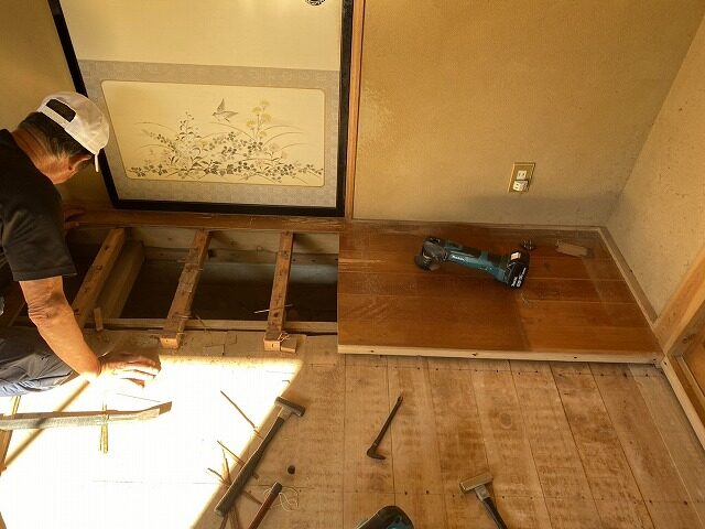 また板の間があり、そこも解体して床を張る場合は下地の状況が畳の下と違うことが多いので高さをそろえるところから調整が必要です。